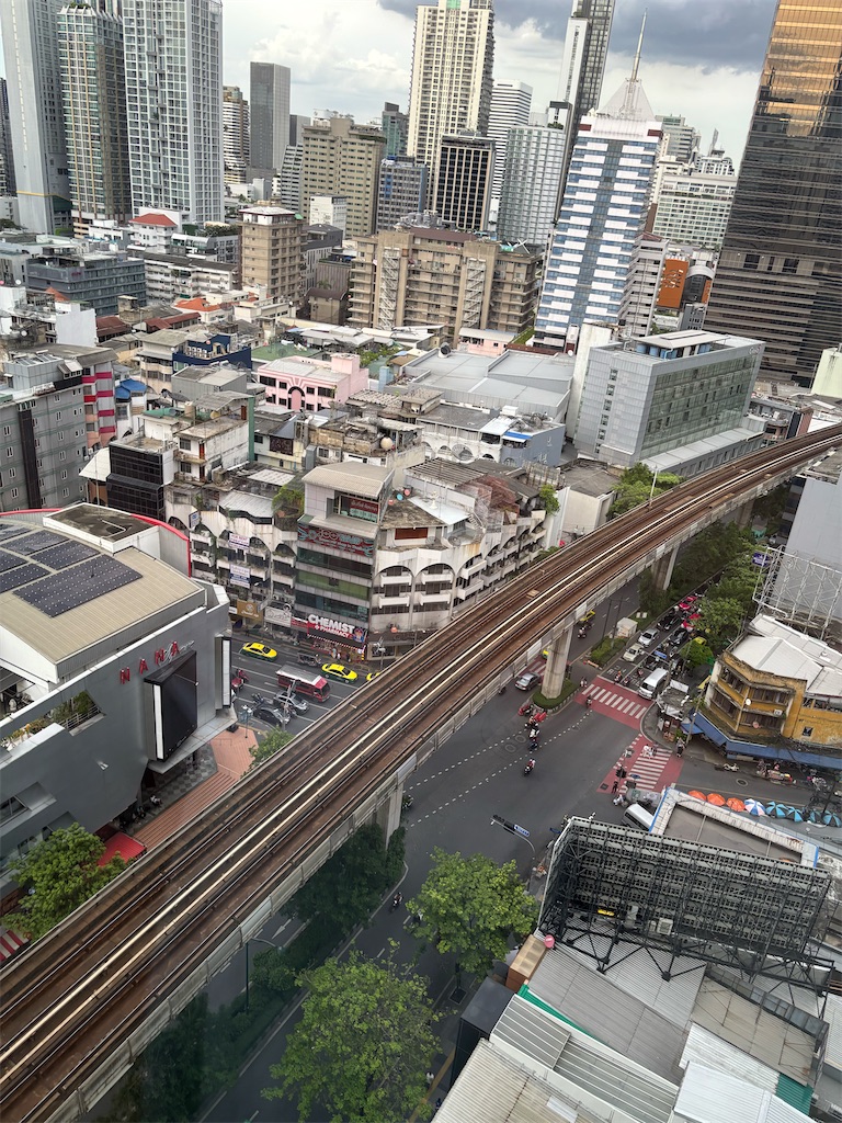 また、今回のお部屋はエレベーターから少し離れた角部屋に近い位置で、窓からは ナナプラザやBTSの高架を眼下に望める眺望。夜景もバンコクらしさを感じられて満足度が高かったです。