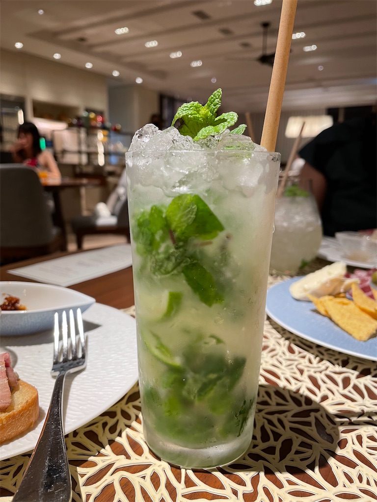 ラウンジの奥には本格的なバーカウンターがあり、ノンアルコールのサラトガクーラーなどもリクエストできました。