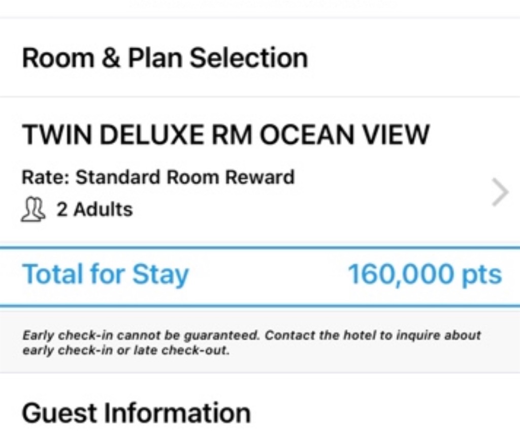 つまり、最低のボトム予約(夏場で8万ポイント)の空きがないと予約できず、電話で空いている日をさがしてもらい、私の持っている無料宿泊の利用期限の7月20日より前だと唯一空いていたのが私の泊まった日でした。