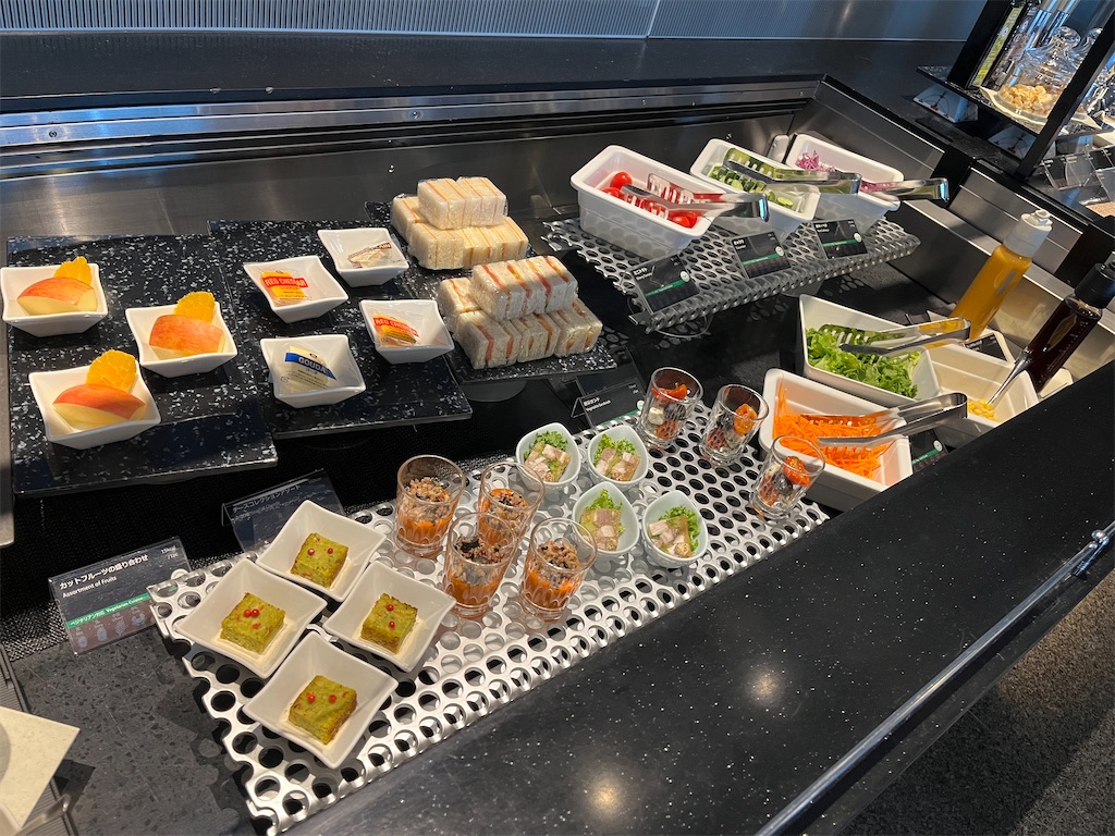 国内線のスイートラウンジはおにぎりとかパン、スープ程度しかフードはありませんが、国際線の場合、オーダーできるメニューも多く、品ぞろえが違います。