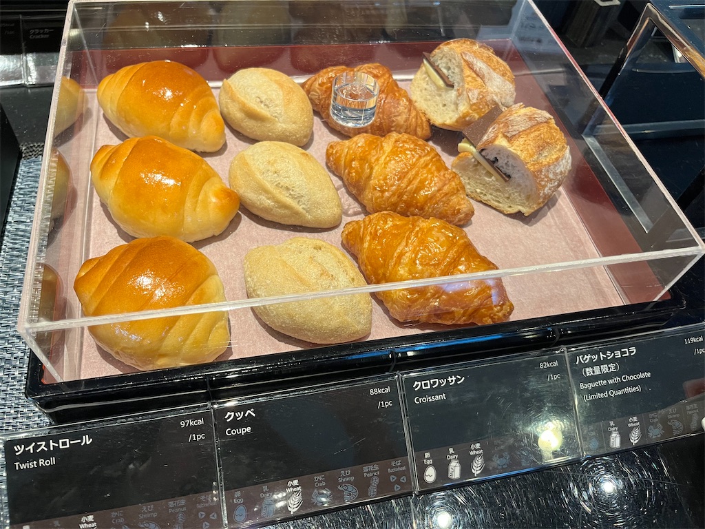 バターとチョコを挟んだバゲットショコラ気になりましたが、ファーストクラスの後の食事のことを考えると、見て楽しんだだけ・・